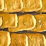 - Teig in Stangen von ca. 7 × 2 cm Größe schneiden und auf ein mit Backpapier ausgelegtes Backblech legen